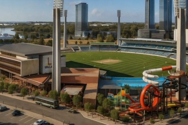 The Western Australian Cricket Association (WACA) ground has undergone a dramatic transformation, with new water slides added to the swimming pool area.