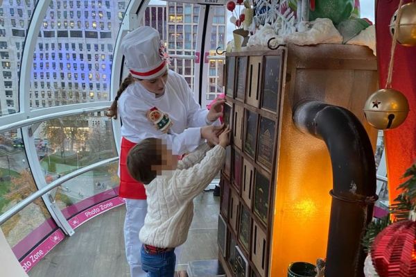 The experience is interactive from the start. While ascending, kids are asked to help Santa and Crumbly Bakewell build a map by spotting some of the key landmarks across the skyline.