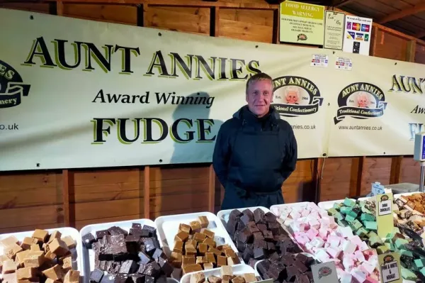 Also trading at Plymouth's festive market for the first time is Karl Toyne, who journeyed down from Lincolnshire. His business, Aunt Annie's Fudge, has been around since 1966, offering intriguing flavours like lemon meringue, banana swirl and Ferrero Rocher — and it's "award winning".