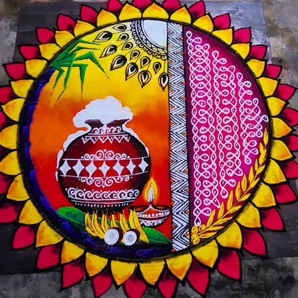 6. Sun and harvest Pongal kolam design