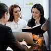 A job applicant listening carefully and responding thoughtfully during an interview discussion