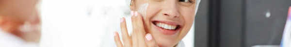 in this image we can see girl applying moisturizer on her face.