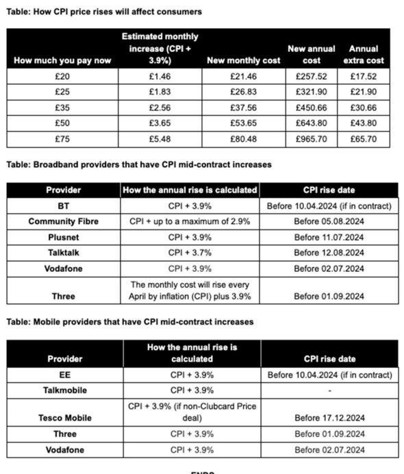 Although the telecoms market has moved to a 'pounds and pence' model that declares flat rate annual price rises upfront, millions of Brits are still on older inflation-linked contracts that abide by older rules.