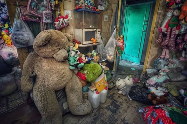 "You can only just walk into the bedroom, the rest of it was just teddies so it's like six feet deep."