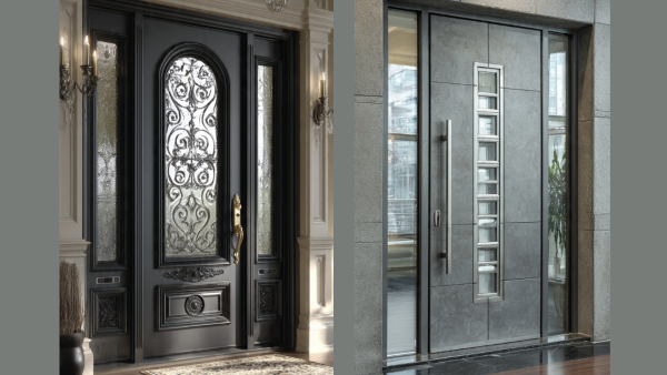 These doors are also said to have two panel design, which offers a combo of classic and modern craftsmanship. As far as the detailing is concerned, the wooden grain on the aluminum base is beautifully engraved, which will give a rich and luxurious look. At the same time, it has stepped carving which is number one in strength. Circular knock and antique style handles are provided for vintage touch in modern interior.