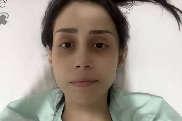 Letícia underwent major surgery — including removal of part of her bowel, reproductive organs, and lymph nodes — and started chemotherapy, using a colostomy bag during her recovery.