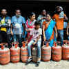 People stand in a long queue with their LPG cylinders outside a gas agency amid the reported LPG supply shortage, in Guwahati on Thursday. (ANI Photo)