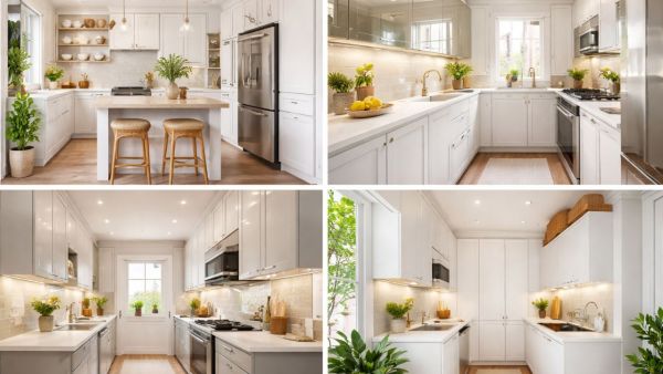 The easiest way to make the kitchen look bigger is to use light colors. Apply white, cream, pastel or light gray shades to walls and shelves. If possible, stick a glossy or laminate sheet on the old rack. Light colors reflect light, making the kitchen appear more open and clean.