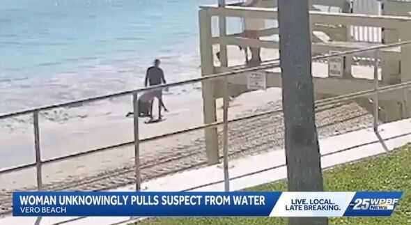 A woman holidaying in Florida bravely plunged into the sea to rescue a distressed swimmer, only to discover after pulling him to safety that he was wanted in connection with the alleged murders of his wife and her estranged lover.