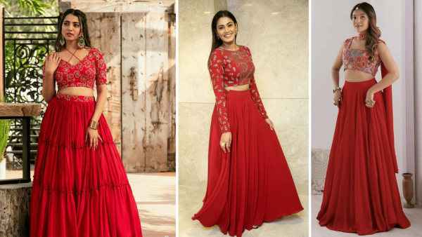 Red channels Shakti, passion, and vitality, empowering you with courage and vibrant energy for evening festivities and family blessings. It wards off negativity. Go for a bold red skirt with crop top and sheer shrug, accessorised with maang tikka and bangles for a dynamic, celebratory ensemble.