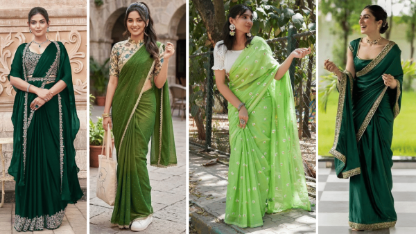 Green links to nature, expansion, and balance, supporting business launches or personal goals with its soothing, prosperous aura on Akshaya Tritiya. It fosters steady progress. Opt for a fresh green saree with detail, worn with oxidised jewellery and juttis for a chic, harmonious festive appearance.