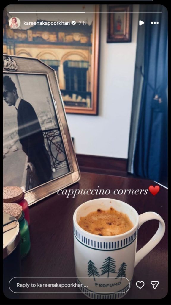 Kareena Kapoor Khan gave her followers a quiet peek into her home life recently, and it turned out to be more meaningful than a typical celebrity Instagram post. She shared a serene image from what she called her cappuccino corner, but it was something in the background that caught everyone’s attention. The Kareena Kapoor cappuccino corner post quickly caught fans’ attention.