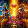 Vishnu and Brahma searching in opposite directions