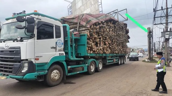 "Ya, telah terjadi kecelakaan tunggal yang melibatkan kendaraan traktor head bermuatan kayu karet. Diduga muatan yang terlalu tinggi menyebabkan bagian atas kendaraan menabrak tiang reklame hingga patah dan tersangkut," ujarnya.
