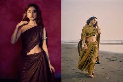 Fluid satin sarees with minimal blouses