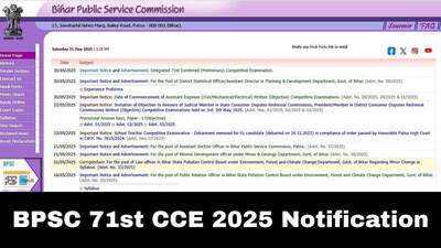 BPSC 71st CCE 2025 Notification: The Bihar Public Service Commission has issued the notification of the BPSC 71st CCE 2025. The registration window for the preliminary examination will start on June 2, 2025, and will end on June 30, 2025. Candidates who wish to apply for the Combined (Preliminary) Competitive examination can check the BPSC 71st CCE 2025 notification at bpsc.bihar.gov.in.