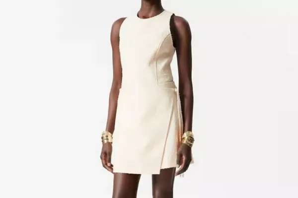 Made from the same textured fabric, Sian paired her sophisticated top with the matching Wrap Mini Skirt. This item features an A-line silhouette with a wrapover design, completed with a concealed inside button and a thin tie-band at the waist to ensure a flattering and secure fit at all times, without scimping on comfort.