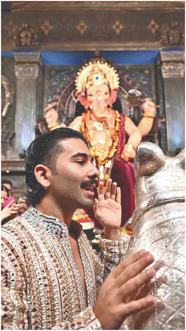 “There’s an unmatched energy here. There’s just something in the air — the people, the space — it feels divine, calming, yet full of excitement and joy,” says Orry as he made his way through the vibrant pandal of Khetwadicha Raja .