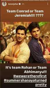 Karan Johar took to Instagram and shared a picture of Varun Dhawan and Sidharth Malhotra from 'Student Of The Year'. The actors played the roles of Rohan and Abhi in the 2012 movie. Sharing the picture, he wrote, "Team Conrad or Team Jeremiah !!!! ???? It’s Team Rohan or Team Abhimanyu!!! #weweretherefirst #summershanayaturnedpretty".