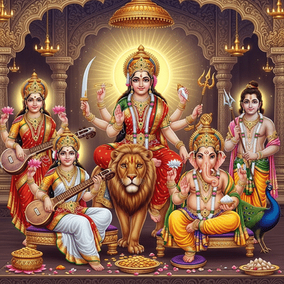 Durga Maa’s four children join her visit