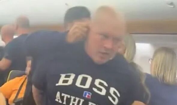 He is then seen climbing onto a seat and fighting with the two officers trying to arrest him. At one point, he almost flies into the passengers across the aisle. The police then grabbed him by the neck and escorted him off the flight as he is heard protesting: "I'm coming, you f***".
