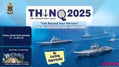 New Delhi: The Indian Navy Quiz- THINQ 2025 has successfully concluded its elimination rounds with 166 teams across the country advancing to the Zonal Selections scheduled on October 13 and October 14, 2025. The semi-finals and grand finale are scheduled to be hosted at the Indian Naval Academy (INA), Ezhimala, in early November 2025.