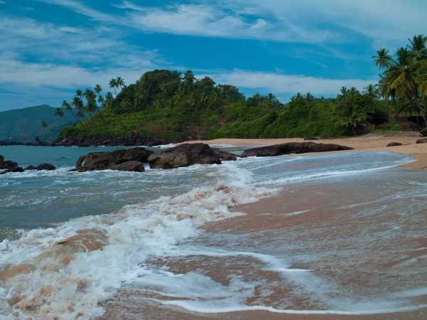 This serene beach is located in Canacona, north of Agonda Beach. This beach is also known as Khola Beach and has exceptional beauty with sparkling sand and coconut groves and also provides a tranquil atmosphere. The unique feature of this beach is its freshwater lagoon which is connected to the sea. Tourists can participate in activities like swimming and diving here and can also relax while sunbathing around the natural beauty. Since this is a secluded beach and less commercialized, it makes it perfect for a tranquil escape, and the ideal time to visit this beach is from November to February.