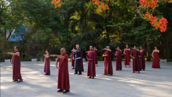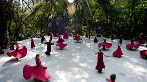 The Evening Meeting is considered the highlight of the day, an experience of dance, celebration, and silence that embodies the essence of effortless awareness.