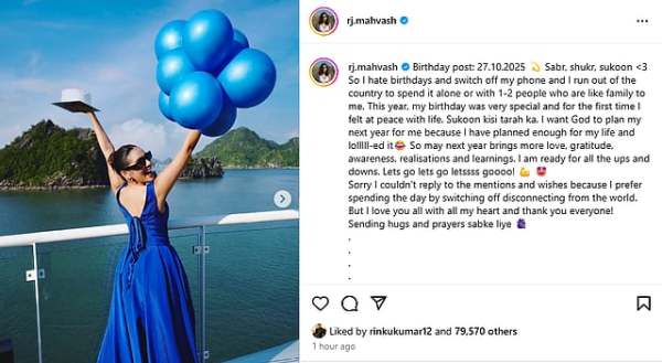 Mavish, who turned 29 on October 27, shared a note with the pictures stating that she usually switches off her phone and often travels to celebrate alone or with very few close people.