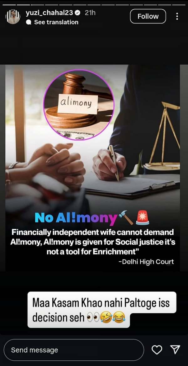 'Maa Kasam Khao Nahi Paltoge…': Yuzvendra Chahal Shares Cryptic Post Taking Dig At Delhi HC's Verdict On AlimonyChahal takes dig at ex-wife Dhanashree Verma