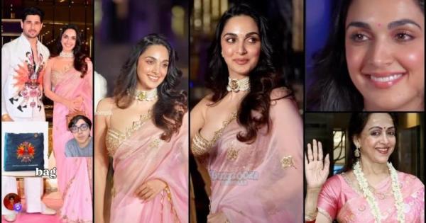 Kiara Advani wears a tight, sultry bralette blouse with a pink saree at the NMACC bash; poses with Sidharth Malhotra; fans say she looks like Hema Malini