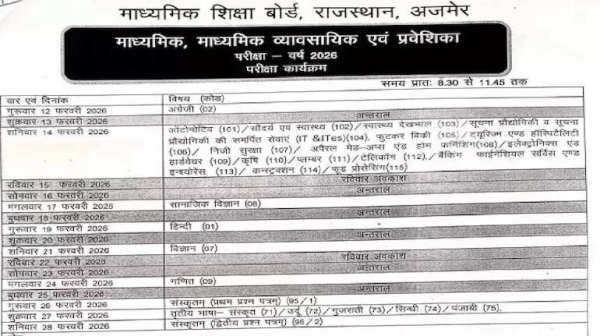 Students appearing for the Rajasthan Board Class 10 and 12 examinations can now download the detailed datesheet from the board’s official website rajeduboard.rajasthan.gov.in. The schedule has been released in PDF format and includes subject-wise exam dates, paper codes, and important instructions.