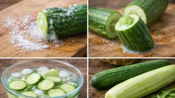 The easiest way to remove the bitterness of cucumber is to rub it with salt. For this, cut the cucumber a little from the top and apply salt on that cut part and rub it in circular motions. Within a few seconds a white foam like substance will start coming out. This is the reason for bitterness. Remove it and wash the cucumber, the bitterness will reduce significantly.