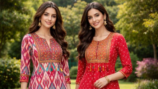 Printed kurtis are a trend in ethnic fashion every season, but these days prints related to traditional arts are being especially liked. Prints like Ajrakh, Hand Block, Bagru, Ikat and Bandhej not only make your look rich but also showcase the beauty of Indian crafts. These kurtis look stylish and comfortable on every occasion from casual to festive. If you also want to add something new and unique to your wardrobe, then these 5 trendy prints are perfect for you.