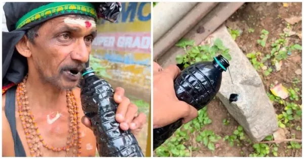Dalam video viral yang diunggah di Instagram @avalakki_pavalakki (3/9), ia tampak menolak makanan dari orang lain dan langsung minum oli dari botol sambil duduk di pinggir jalan.