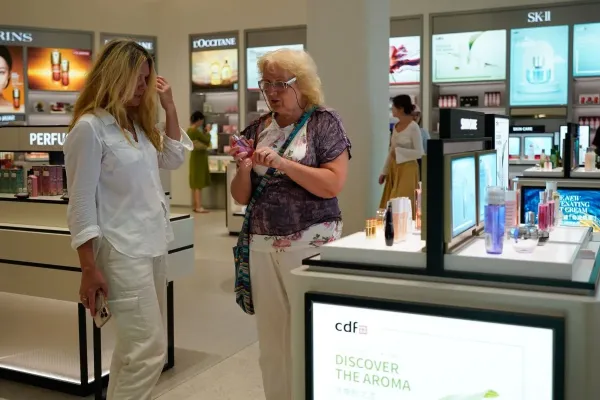 Orang-orang mengunjungi Toko Bebas Bea Pusat Chengdu di Chengdu, Provinsi Sichuan, China (25/9/2025). ANTARA/Xinhua/Xu Bingjie/aa.Seorang staf menjelaskan kebijakan pengembalian pajak (tax refund) kepada seorang pria di Toko Bebas Bea Pusat Kota Chengdu di Chengdu, Provinsi Sichuan, China, pada 25 September 2025. (Xinhua/Xu Bingjie)Foto yang diabadikan pada 25 September 2025 ini menunjukkan Toko Bebas Bea Pusat Kota Chengdu di Chengdu, Provinsi Sichuan, China. (Xinhua/Xu Bingjie) Orang-orang mengunjungi Toko Bebas Bea Pusat Kota Chengdu di Chengdu, Provinsi Sichuan, China, pada 25 September 2025. (Xinhua/Xu Bingjie) Foto yang diabadikan pada 25 September 2025 ini menunjukkan zona bea telah dibayar (duty-paid zone) di Toko Bebas Bea Pusat Kota Chengdu di Chengdu, Provinsi Sichuan, China. (Xinhua/Xu Bingjie)