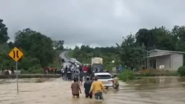 Aparat dusun BPD di lokasi tersebut, Lisa Ariani mengimbau untuk warga yang hendak melintas agar berhati-hati karena adanya banjir.