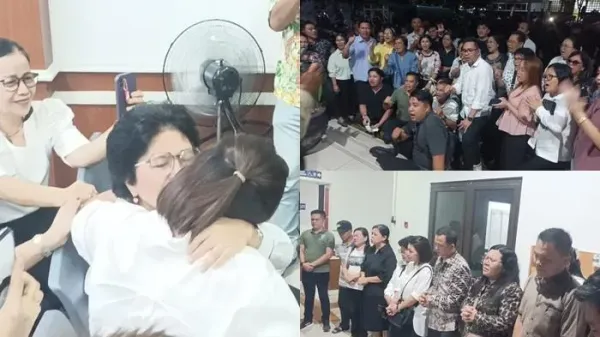 Di luar ruang sidang, puluhan pendukung yang menunggu sejak pagi menyambut kabar itu dengan nyanyian pujian, “Kami memuji kebesaran-Mu.”
