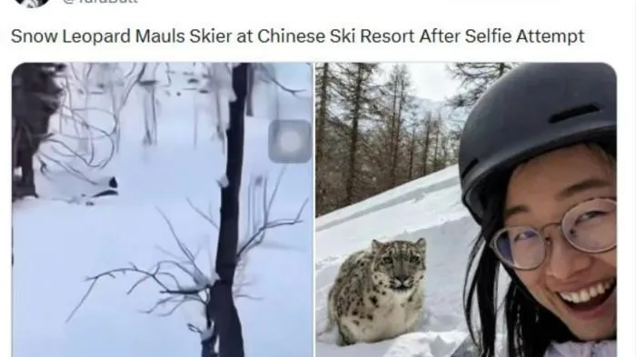 Meski telah diperingatkan sehari sebelumnya oleh pihak berwenang setelah hewan tersebut terlihat di kawasan itu, pemain ski tersebut tetap mendekati macan tutul.