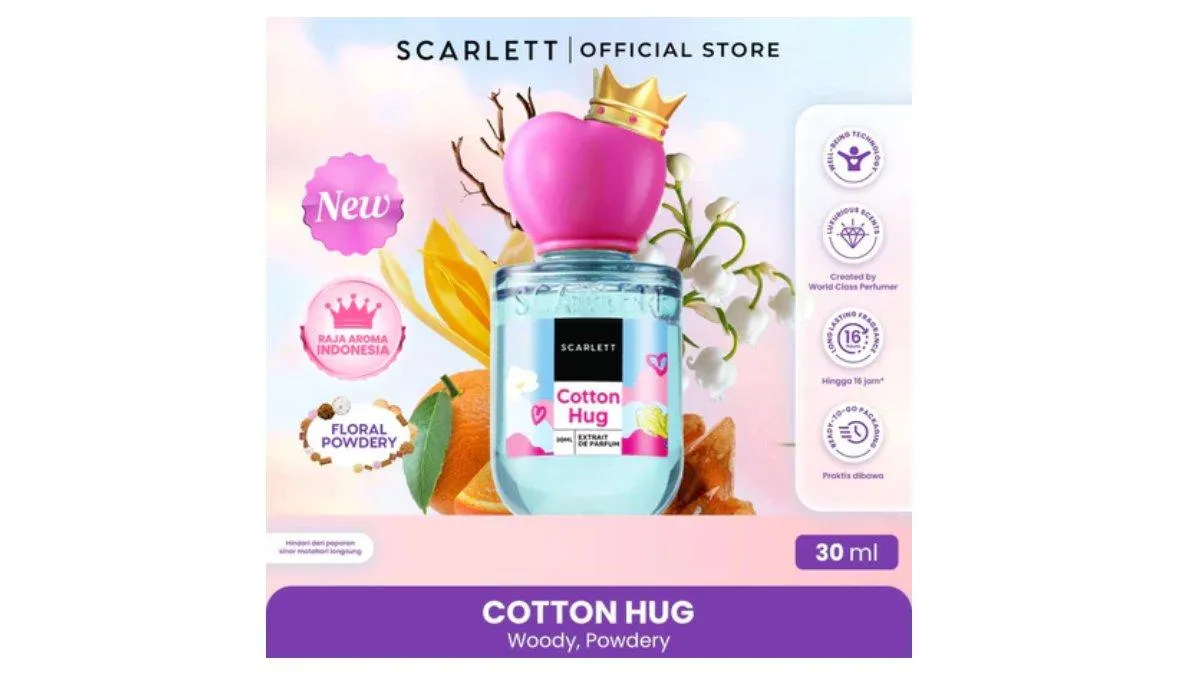 TRIBUNSHOPPING.COM - Scarlett Cotton Hug Extrait de Parfum adalah parfum lokal Indonesia dengan konsentrasi Extrait de Parfum yang lebih tinggi dibanding Eau de Parfum.