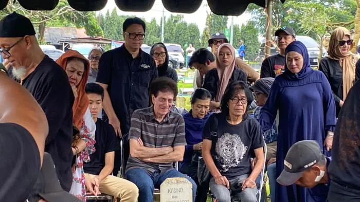 Mereka hanya bisa menatap prosesi pemakaman bassist God Bless tersebut dengan penuh kesedihan.