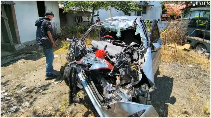 Mobil yang membawa para pemudik tersebut remuk dan nyaris tak berbentuk.