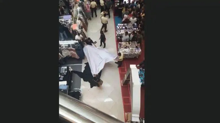 Insiden ini sontak mengundang perhatian para pengunjung yang berada di dalam pusat perbelanjaan. Suasana sempat panik ketika korban ditemukan dalam kondisi tidak sadarkan diri di lantai dasar.