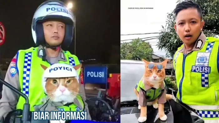 Kucing itu dikenal dengan nama Oyen Poyici, yang belakangan viral karena aksinya “membantu” polisi memantau lalu lintas.