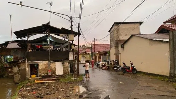 Hingga kini, warga masih berupaya membersihkan sisa-sisa banjir dari rumah dan jalanan sekitar. (Pet)