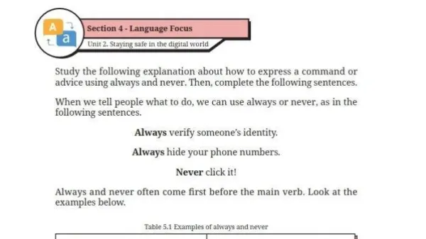 - Kalimat Perinci: "... lebih tebal dari keripik-keripik pisang biasa. Keripik ini lebih empuk juga, tetapi tetap renyah ketika digigit. Rasa cokelatnya....wow, jangan ditanya.!"