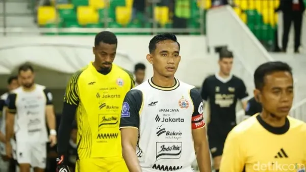 Kapten Persija Jakarta, Rizky Ridho, mengenakan pita hitam saat melawan Dewa United. Macan Kemayoran turut prihatin dengan situasi panas Jakarta.
