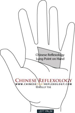 Lokasi: Titik ini terletak di bagian atas telapak tangan, di bawah tiga jari tengah. Ada titik refleksi paru-paru di kedua tangan, tangan kiri untuk paru-paru kiri, dan tangan kanan untuk paru-paru kanan.