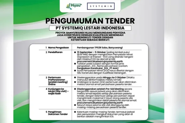 - teknik lingkungan/kesehatan masyarakat, teknik informatika/sistem informasi, akuntansi/keuangan, administrasi, desain komunikasi visual, atau jurusan relevan lainnya.