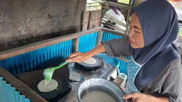 Di warung Acil Noni di Parincahan ini, menjual Apam Batil (kue serabi khas Banjar) yang bisa dinikmati selagi hangat, karena langsung digoreng di tempat dari adonan yang telah disediakan, Jumat (3/10/2025).